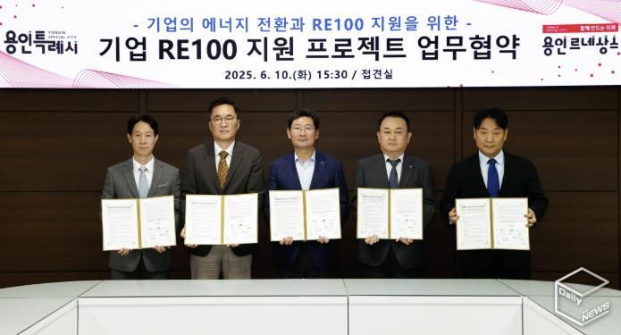 e데일리뉴스 | 용인특례시는 지역내 기업의 에너지전환과 ‘RE100(Renewable Electricity 100)’ 이행 지원을 위한 업무협약을 체결했다고 11일 밝혔다.