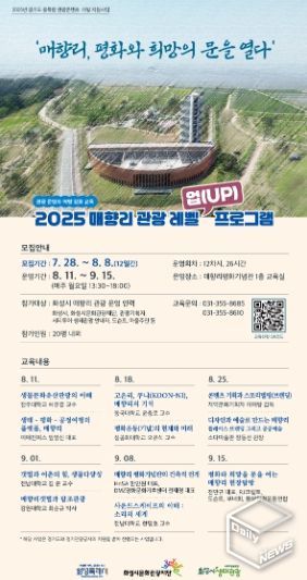 e데일리뉴스 | 경기도와 경기관광공사가 후원하고, 화성특례시·화성시문화관광재단·화성시생태관광사회적협동조합이 공동 주관하는 ‘매향리 관광 레벨업(Up)’ 프로그램이 8월 11일 매향리평화기념관에서 개강했다. 이번 프로그램은 9월 15일까지 매주 월요일 6주간 진행되며, 매향리 관광 관계자들의 전문성과 서비스 품질 향상을 목표로 한다.