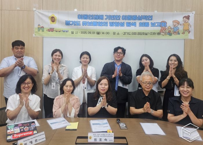 e데일리뉴스 | 경기도의회 여성가족평생교육위원회 최효숙 위원(더불어민주당, 비례)은 1일 경기도의회 정담회실에서 열린 ‘아동인권에 기반한 아동중심적인 경기도 유보통합의 방향성 탐색’ 연구용역의 최종보고회를 성공적으로 마쳤다고 밝혔다.