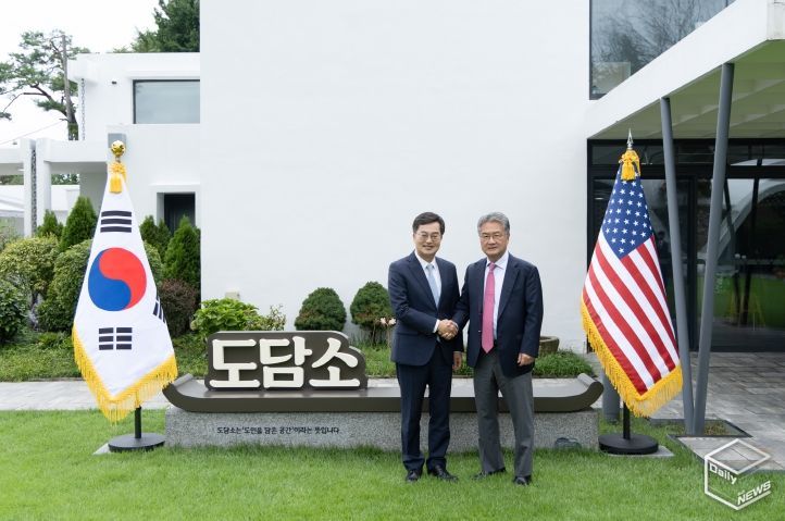 e데일리뉴스 | 김동연 경기도지사가 4일 도담소에서 조셉 윤(Joseph Yun) 주한 미국대사대리와 오찬을 갖고, 최근 한미 정상회담을 계기로 더욱 공고해진 양국 협력의 중요성을 재확인하며 경기도-미국 간 관계 강화 방안을 논의했다.