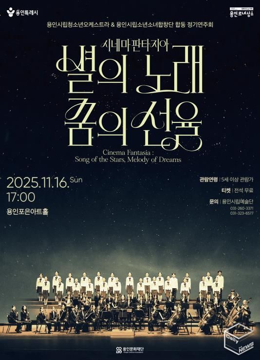 e데일리뉴스 | (재)용인문화재단은 오는 11월 16일 용인포은아트홀에서 용인시립청소년오케스트라와 용인시립소년소녀합창단 합동 정기연주회 '시네마 판타지아 : 별의 노래, 꿈의 선율'을 개최한다.