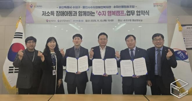 e데일리뉴스 | 용인특례시 수지구는 13일 용인시수지장애인복지관과 수지신용협동조합과 함께 저소득 장애아동의 복지 향상과 장애 인식 개선을 위한 ‘수지 행복캠프’ 추진 업무협약을 체결했다고 14일 밝혔다.