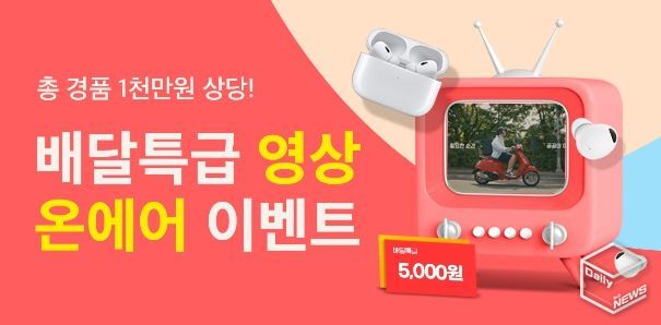 경기도주식회사는 배탈특급 앱을 통해 총 경품 1천만원 상당의 ‘배달특급 영상 온에어 이벤트’를 오는 15일까지 진행한다.