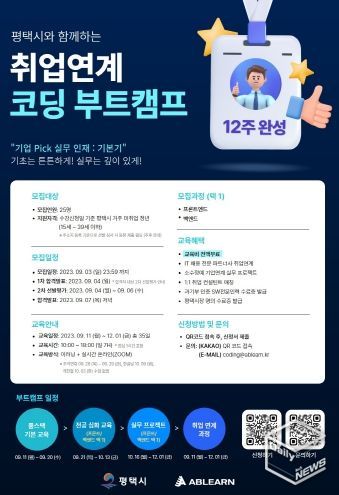 신청은 오는 9월 3일까지 교육기관인 에이블런 누리집에서 온라인 신청하면 된다. 모집인원 중 1차 합격자를 대상으로 2차 선발 평가가 있을 예정이며 최종 합격 발표는 9월 7일이다.