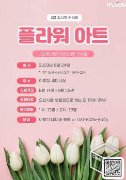 e데일리뉴스 | 오산시 청년일자리지원센터 이루잡(오산시 운천로 62, 3층)이 관내 청년들을 대상으로 ‘회사밖 커리어’프로그램을 오는 24일부터 4회차(플라워아트 2회, 칵테일 2회) 운영한다.