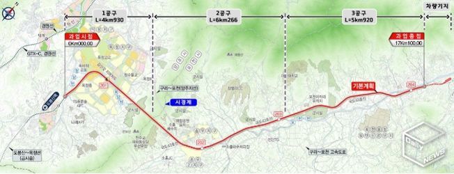 실시설계적격자가 선정된 1공구는 양주시 구간으로, 연장 4.93km에 환승정거장 1개, 본선환기구 4개를 설치하는 사업으로, 추정공사비는 3,543억 원이다.