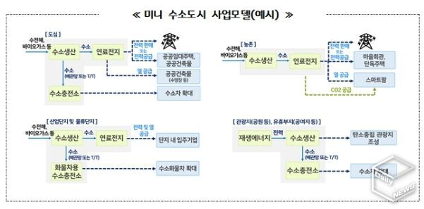 도가 새롭게 추진하는 ‘미니 수소도시 조성사업’은 경기도 민선8기 공약사항인 ‘수소융합 클러스터 조성’에 따른 것이다. 예를 들어, 미니 수소도시 내에서 수소를 생산하고 수소충전소나 연료전지를 통해 공공건축물에 전력을 공급하고 수소차를 확대하는 모델을 제시할 수 있다.