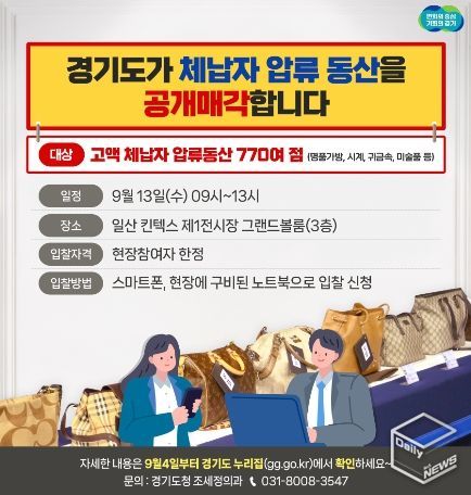 e데일리뉴스 | 경기도가 지방세 고액 체납자 가택수색을 통해 압류한 명품 시계, 가방 등 772점을 오는 13일 전북, 경북, 제주 등 다른 시도와 합동으로 공개 매각한다.