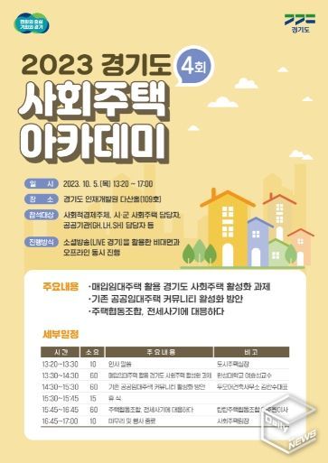 e데일리뉴스 | 경기도는 5일 경기도인재개발원에서 경기도 테마형 임대주택 공급 방안 등 사회주택 활성화를 위한 ‘제4회 경기도 사회주택 아카데미’를 개최했다.