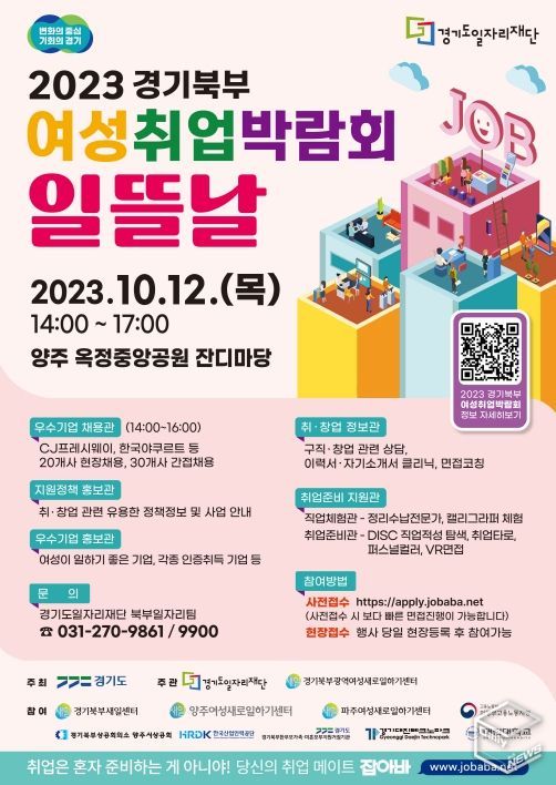 e데일리뉴스 | 기도와 경기도일자리재단은 12일 오후 2시 양주시 옥정중앙공원 잔디마당에서 경기북부 구직여성을 위한 여성취업박람회 ‘일뜰날’ 행사를 연다.