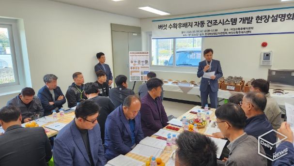 e데일리뉴스 | 경기도농업기술원이 버섯 수확후배지 자동 건조시스템을 개발하고 18일 여주시 버섯 수확후배지센터에서 현장설명회를 개최했다.