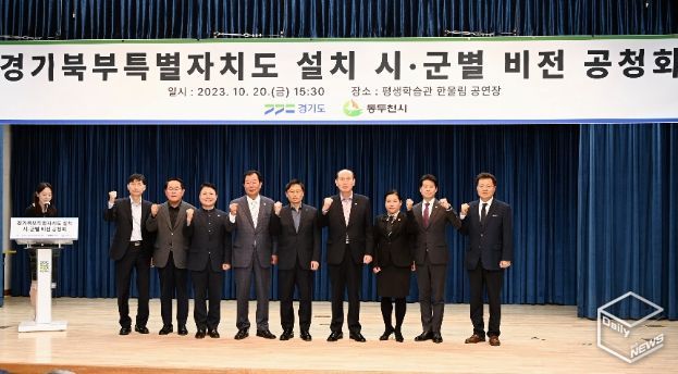 경기도는 20일 동두천평생학습관 한울림 공연장에서 오후석 행정2부지사, 박형덕 동두천시장, 김승호 시의회의장, 황주룡 동두천시의회 부의장을 비롯한 도의원 및 시의원, 지역주민 등 100여 명이 함께한 가운데 ‘경기북부특별자치도 설치 추진 시군별 비전 공청회’를 열었다.