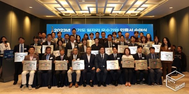 e데일리뉴스 | 경기도는 26일 라마다플라자 수원호텔 오키드홀에서 염태영 경기도 경제부지사, 손일권 경기도일자리재단 서부사업본부장, 일자리 우수기업 인증기업 대표 등 관계자 80여 명이 참석한 가운데 ‘2023년 경기도 일자리 우수기업 인증서 수여식’을 열고 60개 우수기업에 인증서를 수여했다.