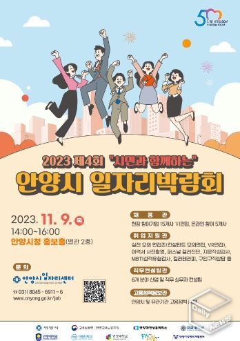 e데일리뉴스 | 안양시는 시 승격 50주년을 맞아 시민과 함께하는‘제4회 안양시 일자리 박람회’를 9일 오후 2시 안양시청 별관 2층 홍보홀에서 개최한다고 8일 밝혔다.