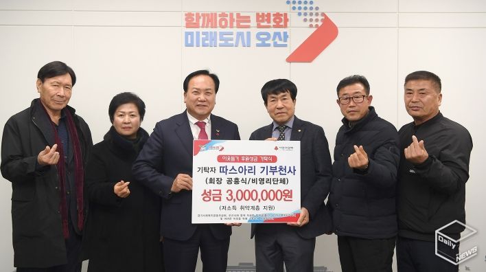 e데일리뉴스 | 오산시는 따스아리 기부천사가 시청을 방문, 관내 취약계층 지원을 위한 성금 300만 원을 기탁했다고 30일 밝혔다.