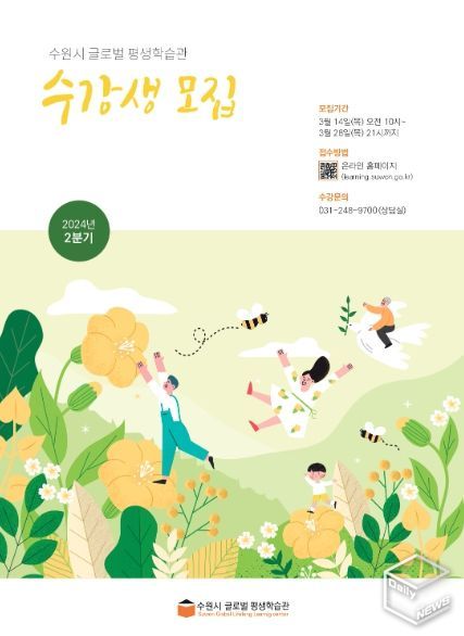 e데일리뉴스 | 수원시글로벌평생학습관이 2024년 2분기 프로그램 수강생을 14일부터 모집한다. 2분기 강좌는 4월부터 6월까지 운영된다.