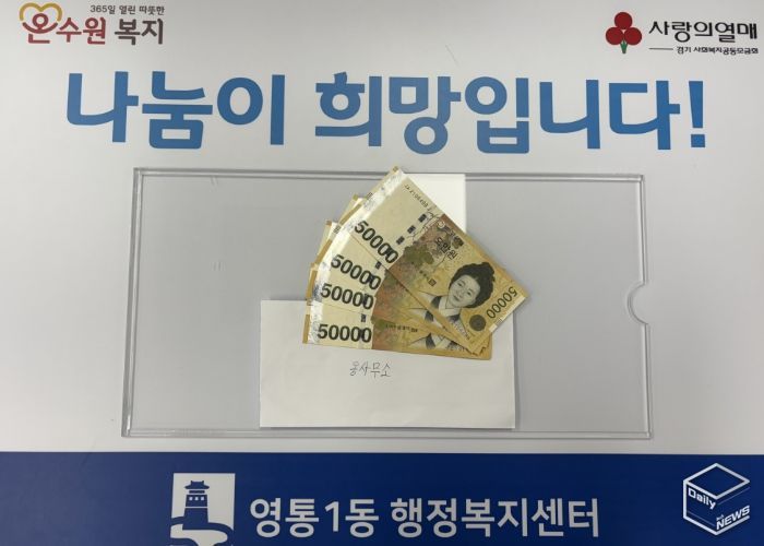 신한길 영통1동장은 “도움을 받던 분이 다시 나눔을 실천하는 모습에 큰 감동을 받았다”며 “지역사회 내 선한 영향력이 더욱 확산되어 모두가 함께하는 따뜻한 공동체가 만들어질 수 있도록 노력하겠다”고 말했다.