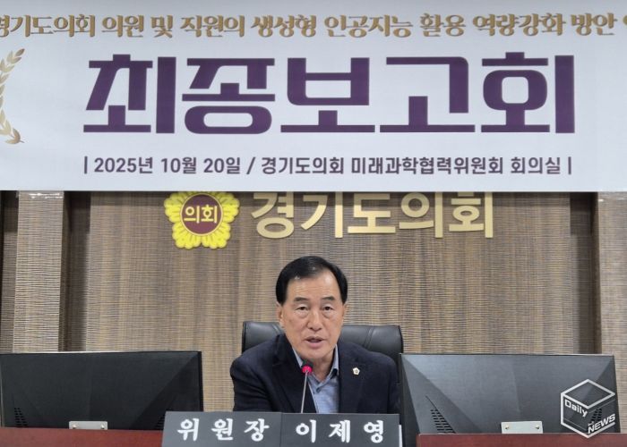 e데일리뉴스 | 경기도의회 미래과학협력위원회는 10월 20일, 도의회 위원회 회의실에서 『경기도의회 의원 및 직원의 생성형 인공지능 활용 역량강화 방안 연구』에 대한 최종보고회를 개최했다.