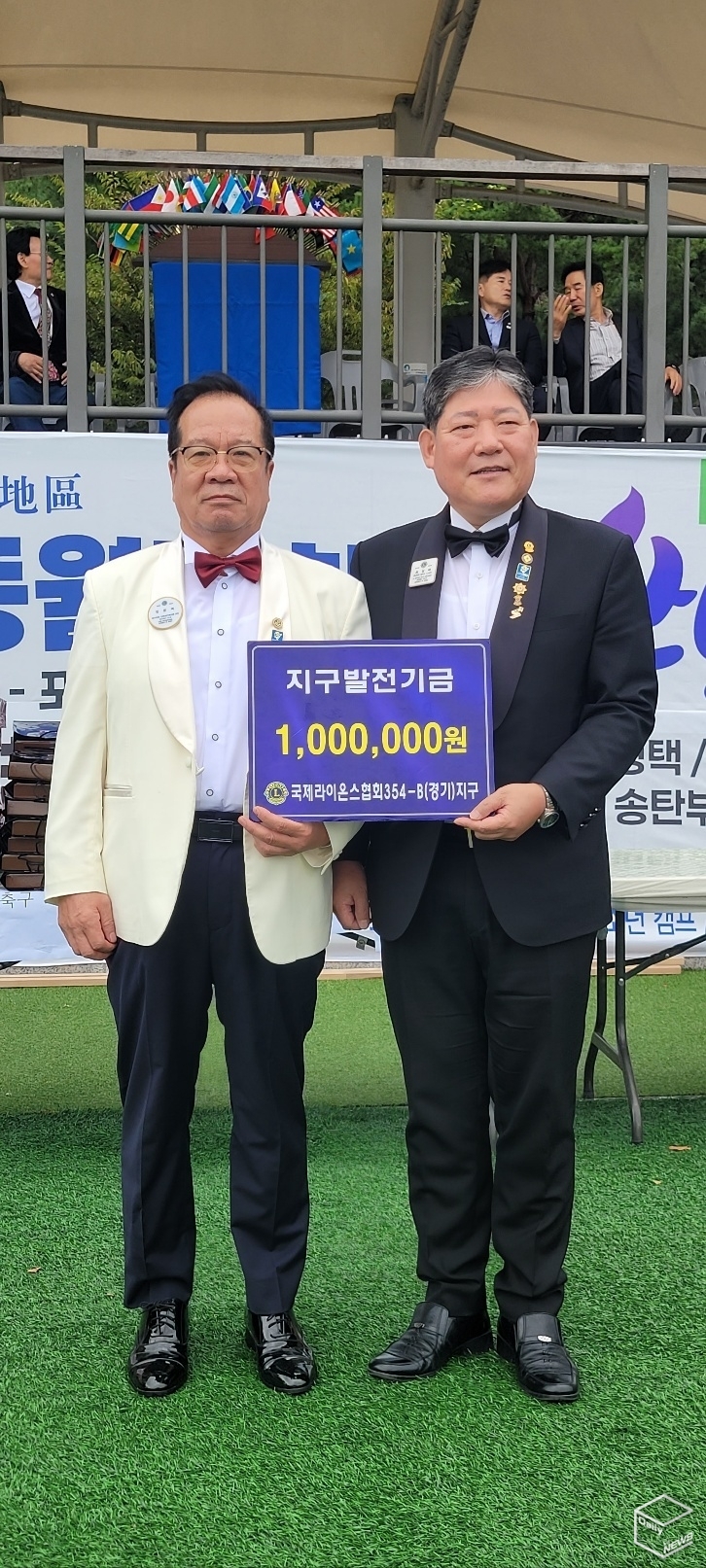 이날 행사에서는 △지구 발전기금 △회관 건립기금 △LCIF 기금 전달이 잇따라 진행됐다. 임윤택 부총재를 비롯해 각 지대위원장과 자문위원들이 100만 원씩 기부하며 지역 봉사 확산에 힘을 보탰다. 지구본부 시상에서 무궁화 사자대상은 임윤택(안중중앙라이온스클럽) 라이온이 수상했다. 또 선수단 대표로 곽노흥(신평택라이온스클럽)·박지윤(송탄클로바라이온스클럽) 회원이 선서를 통해 정정당당한 경기 참여를 다짐했다.