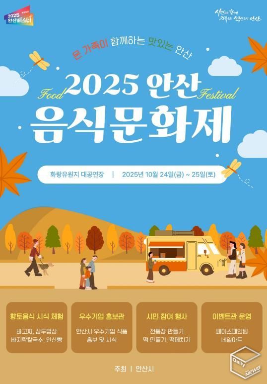 e데일리뉴스 | 안산시는 오는 24일부터 25일까지 양일간 화랑유원지 대공연장 일원에서 ‘2025 안산 음식문화제’를 개최한다고 22일 밝혔다.