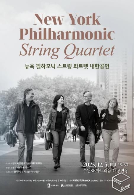 e데일리뉴스 | 수원문화재단은 오는 12월 5일 금요일 오후 7시 30분, 수원SK아트리움 대공연장에서 ‘뉴욕 필하모닉 스트링 콰르텟 내한공연’을 개최한다.