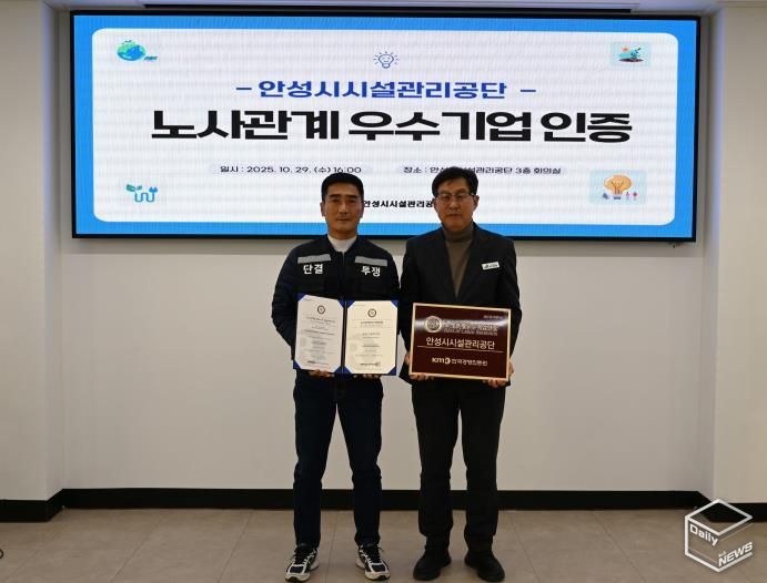 e데일리뉴스 | 안성시시설관리공단은 안성시시설관리공단 노동조합과 함께 상생과 신뢰를 기반으로 한 모범적인 노사문화를 인정받아 ‘노사관계 우수기업’ 인증을 획득하했다고 밝혔다.