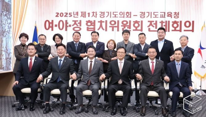 최종현 대표의원과 임태희 교육감, 백현종 국민의힘 대표의원은 이날 도의회 예담채에서 ‘제1차 경기도의회-경기도교육청 여야정협의체 전체회의’를 열고 ‘2026년도 본예산 협치예산 합의문’에 서명했다.