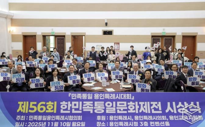 e데일리뉴스 | 용인특례시는 10일 시청 컨벤션홀에서 민족통일 용인특례시협의회 주관으로 ‘민족통일 용인특례시대회와 제56회 한민족통일문화제전 시상식’이 열렸다고 밝혔다.