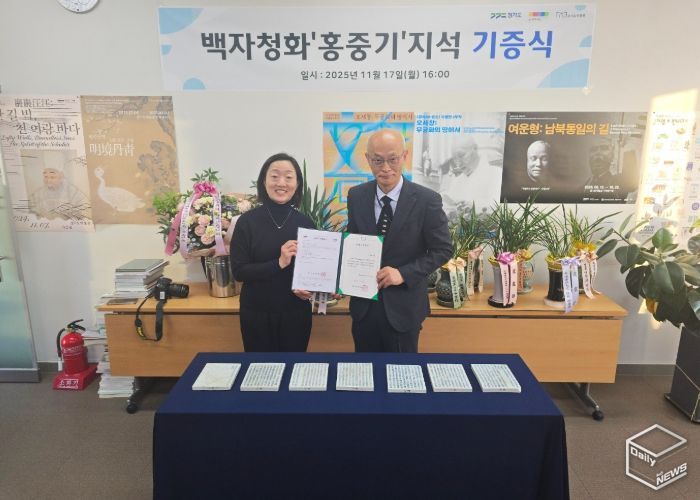 e데일리뉴스 | 경기문화재단 경기도박물관은 2025년 11월 17일 조선시대 ‘홍중기백자지석’의 기증식을 개최했다. 기증식에는 유물을 기증한 재일교포 이수혜님과 홍중기의 본관인 풍상홍씨 대종회 홍광식 회장, 풍상홍씨 추만공파 종중 홍경희 회장 등이 참석하여 자리를 빛냈다.