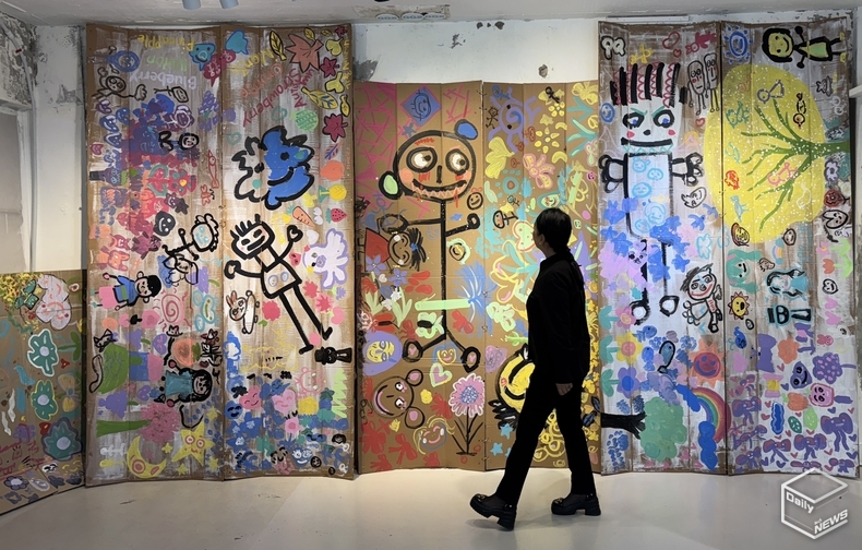 한편, 이번 기사에 실린 두 번째 사진은 좀 각별한 작품을 촬영한 것이다. 사람 키 보다도 더 높고 넓은 이 작품만은 12월 6일까지 서울 성동구 GG2 갤러리에서 만날 수 있다. 이 작품은 행사 당일에 발달장애인들과 구구킴 작가가 퍼포먼스로 완성한 작품으로 네 개의 작품이 벽 하나를 다 메울 정도의 크기여서 좀처럼 감상하기 어려운 작품으로 전달됐다. /kkseews@naver.com
