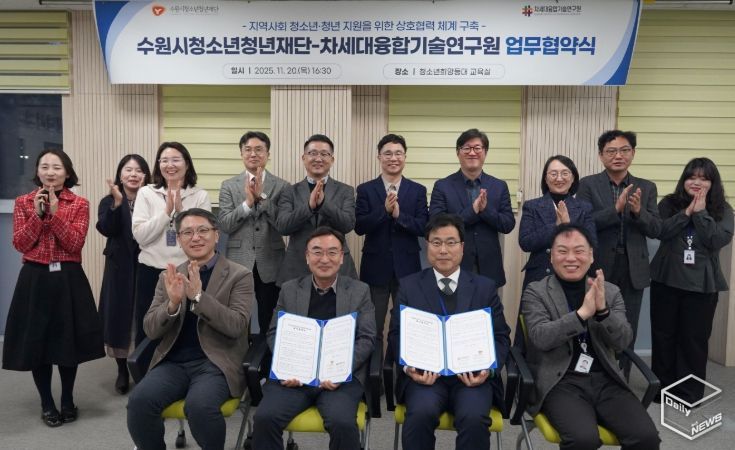 e데일리뉴스 | 수원시청소년청년재단(이사장 최종진)과 차세대융합기술연구원(원장 김연상)은 11월 20일, 청소년·청년의 미래 역량 강화와 성장 지원을 위한 업무협약(MOU)을 체결했다.