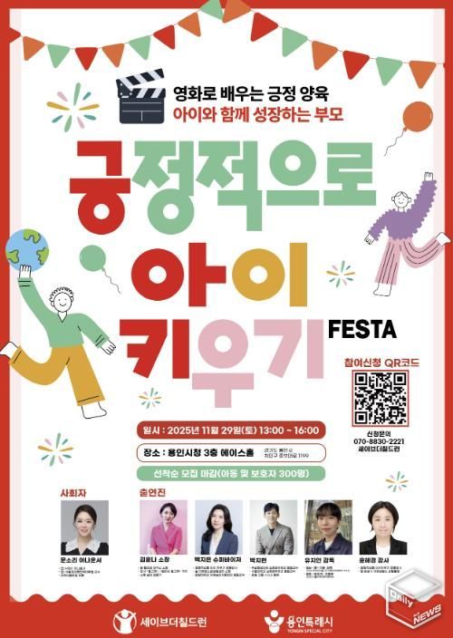 e데일리뉴스 | 용인특례시는 세이브더칠드런과 ‘긍정적으로 아이키우기 페스타’를 29일 시청 에이스홀에서 개최한다고 25일 밝혔다.