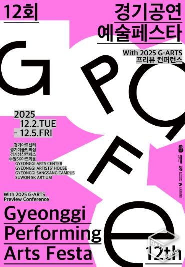 e데일리뉴스 | 경기문화재단은 경기도 수원 일대에서 제12회 경기공연예술페스타를 개최한다. 페스타는 2025년 12월 2일부터 5일까지 경기 예술인의 집, 경기아트센터, 경기상상캠퍼스, 수원SK아트리움 등에서 진행되며, 베스트콜렉션, 쇼케이스 데이, 공동 창·제작 쇼케이스, 피치세션, 토크세션, 워크숍 등 다양한 프로그램을 통해 경기 공연예술 생태계의 흐름과 성과를 한눈에 보여줄 예정이다. 또한 경기아트센터 주최 ‘2025 G-ARTS 프리뷰 컨퍼런스’가 동시 개최되며, 보다 풍성한 전문 교류의 장을 마련한다.