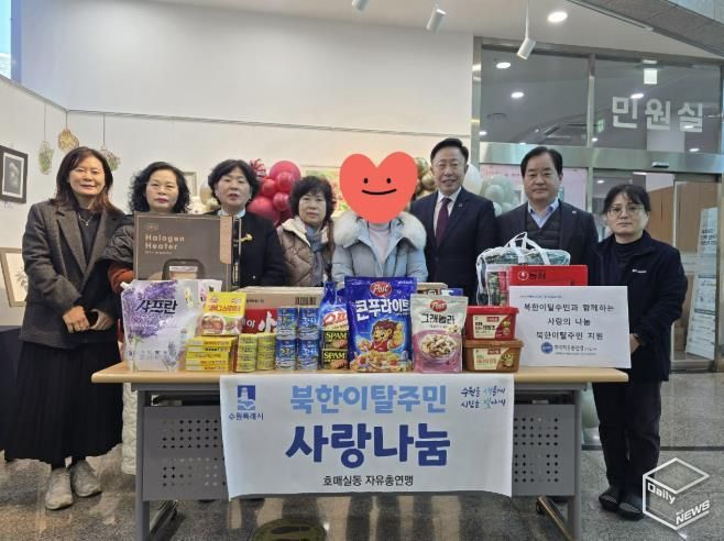 e데일리뉴스 | 권선구 호매실동 한국자유총연맹은 지난 17일, 연말연시를 맞아 관내 북한이탈주민에게 따뜻한 사랑 나눔 선물을 전달했다.