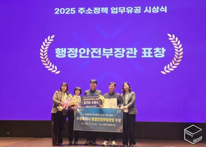 e데일리뉴스 | 수원특례시가 행정안전부 주관 ‘2025 주소정책 워크숍’에서 ‘2025 주소정책 업무 분야 우수기관’으로 선정돼 행정안전부 장관 표창을 받았다. 특별교부세 4000만 원도 확보했다.