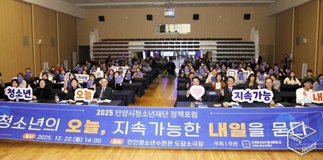 e데일리뉴스 | 안양시청소년재단은 지난 22일 만안청소년수련관 도담소극장에서 120명이 참석한 가운데 ‘청소년의 오늘, 지속가능한 내일을 묻다’를 주제로 2025년 안양시청소년재단 정책포럼을 개최했다고 23일 밝혔다.