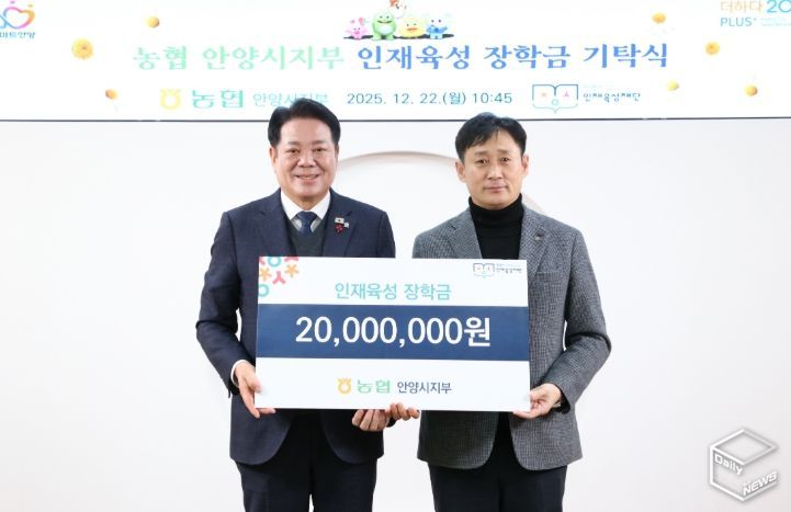 e데일리뉴스 | 안양시 인재육성재단이 지난 22일 농협 안양시지부로부터 인재육성을 위한 장학금 2천만 원을 기탁받았다고 23일 밝혔다.