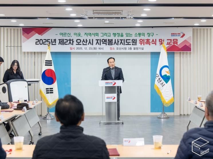 e데일리뉴스 | 오산시는 지난 23일 오산시청 물향기실에서 신규 경로당 회장을 대상으로 한 '2025년 지역봉사지도원 위촉식'을 개최했다고 밝혔다.