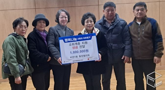 e데일리뉴스 | 평택시 비전1동 통장협의회는 지난 17일, 연말을 맞아 관내 어려운 이웃을 위해 써달라며 이웃돕기 성금 100만 원을 비전1동 행정복지센터에 기부했다.