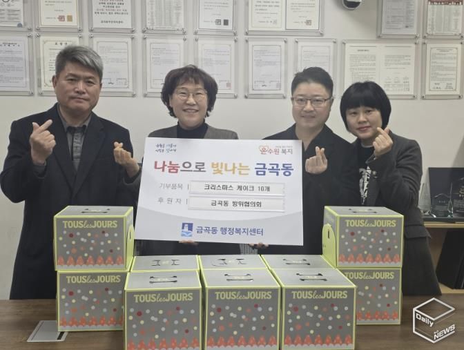 장성임 금곡동장은 “평상시에도 금곡동을 위해 애정을 아끼지 않으신 우리 동 방위협의회 위원님들께서 크리스마스를 맞아 관내에 어려운 가정의 아동들을 위해 준비해 주신 케이크 덕분에 아이들이 즐거운 크리스마스를 맞을 수 있을 것 같아 감사드린다” 라고 말했다.
