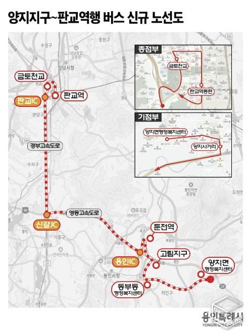e데일리뉴스 | 용인 양지지구를 출발해 고림동과 둔전역을 거쳐 성남 판교역까지 운행하는 버스 노선이 확정됐다.