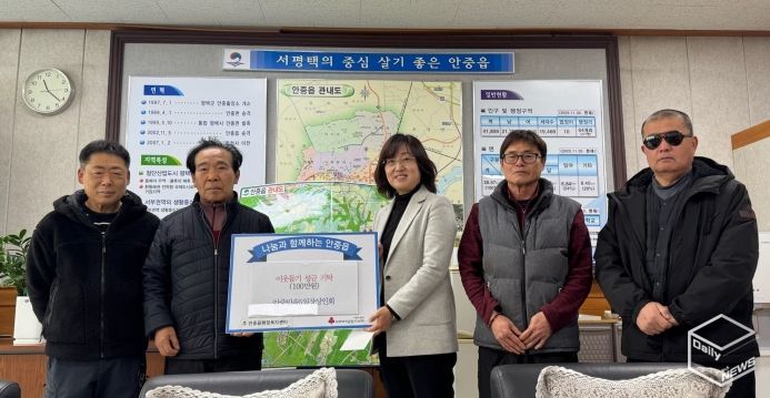 e데일리뉴스 | 안중민속5일장상인회는 지난 26일 평택시 안중읍 행정복지센터를 방문해 어려운 이웃을 위한 성금 100만 원을 기부했다.