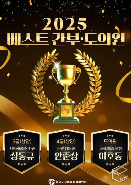 e데일리뉴스 | 경기도교육청 직장협의회는 소통과 협력을 기반으로 한 조직문화 정착과 활기찬 직장 분위기 조성을 위해 '2025년 베스트 간부 및 경기도의원'을 선정했다고 12월 30일 밝혔다.
