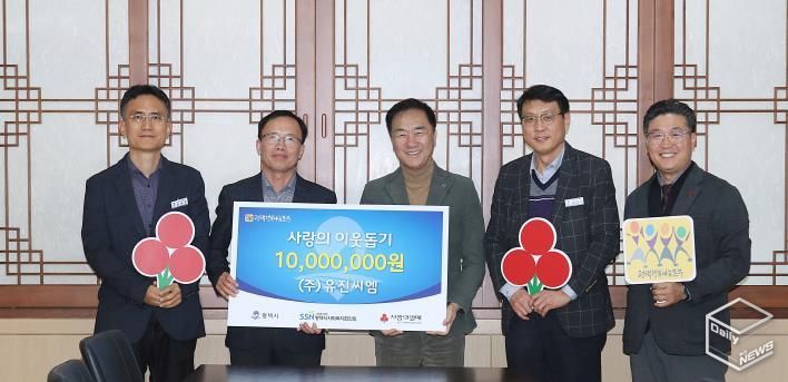 e데일리뉴스 | (주)유진씨엠은 지난 29일 평택시청 대외협력실에서 평택행복나눔본부에 이웃돕기 성금 1,000만원을 전달했다.