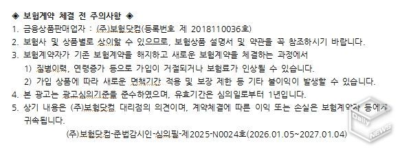 보다 자세한 가입 조건이나 적정 진단금액 설정은 비갱신형 암보험 비교사이트를 활용하여 여러 회사의 상품을 실시간으로 보험료 비교도 해볼 수 있으며, 다양한 정보를 비대면으로 주말까지 전문가와 상담이 가능하므로 3대진단비 등 종합건강보험 가입 시 편리하게 이용할 수 있다.