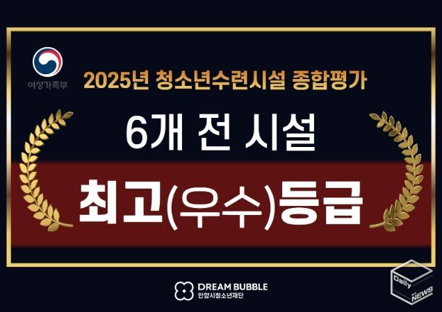 e데일리뉴스 | 안양시청소년재단은 성평등가족부와 한국청소년정책연구원이 실시한 ‘2025년도 청소년수련시설 종합평가’에서 소속 6개 청소년수련시설이 전국 최상위 성과를 거두며 운영 역량을 공식적으로 인정받았다.