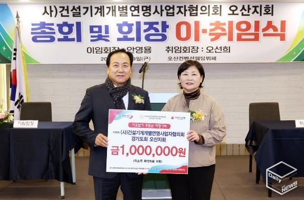 e데일리뉴스 | 오산시는 사단법인 건설기계개별연명사업자협의회 오산지회가 저소득 취약계층 지원을 위한 이웃돕기 성금 100만 원을 기탁했다고 밝혔다.