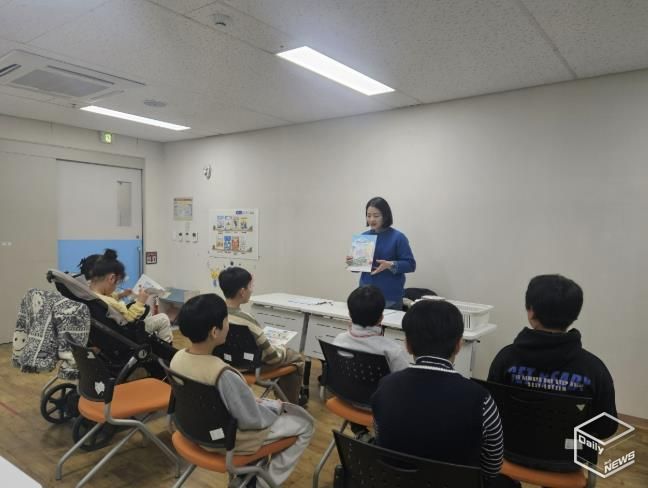 1~2월에는 호매실장애인종합복지관에서 장애 초등학생을 대상으로 ‘찾아가는 그림책 인지교실’을 운영한다. 1월에는 초등학생 겨울독서교실 ‘마음씨가 톡 튀어나왔어’를 열어 그림책을 통해 감정을 표현하는 활동을 한다.