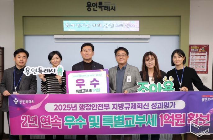 e데일리뉴스 | 용인특례시는 지난해에 이어 ‘지방규제혁신 성과평가’에서 우수 기관으로 선정돼 특별교부세 1억 원을 확보했다고 16일 밝혔다.