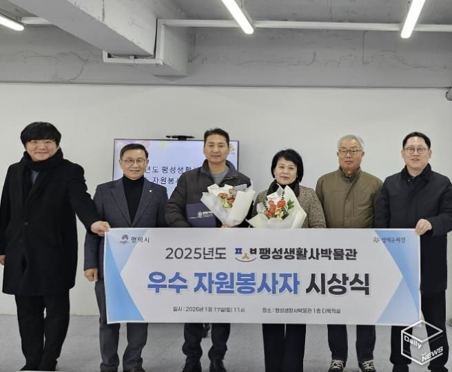 e데일리뉴스 | 팽성생활사박물관은 2026년 1월 17일 팽성생활사박물관 1층 다목적실에서 ‘2025 팽성생활사박물관 우수 자원봉사자 시상식’을 열고, 한 해 동안 헌신적인 봉사활동을 펼친 자원봉사자들에게 표창장과 감사 선물을 전달했다.
